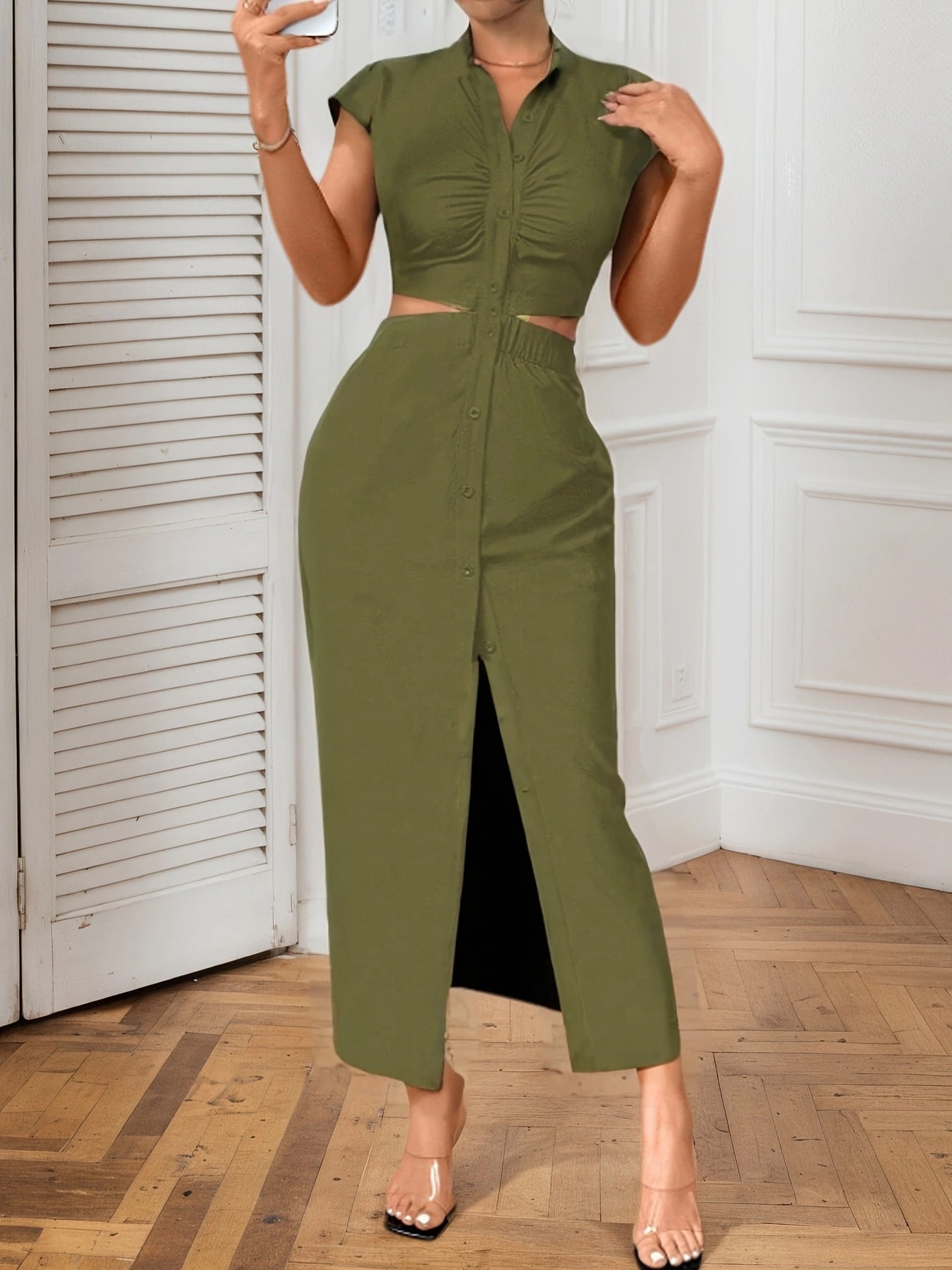 Own the room in this ultra-sexy, cutout bodycon dress – designed to sculpt your figure and make a bold statement. Featuring a flattering waist-snatching fit, daring midsection cutouts, and a modern stand collar, this dress brings major confidence and curve appeal. Perfect for nights out, parties, or Instagram-worthy moments. Slip it on, snap your pics, and steal the spotlight. :fire: