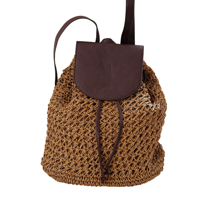 Lightweight straw backpack with Mori-girl charm and breezy summer style—ideal for beach days, market strolls or vacation outings