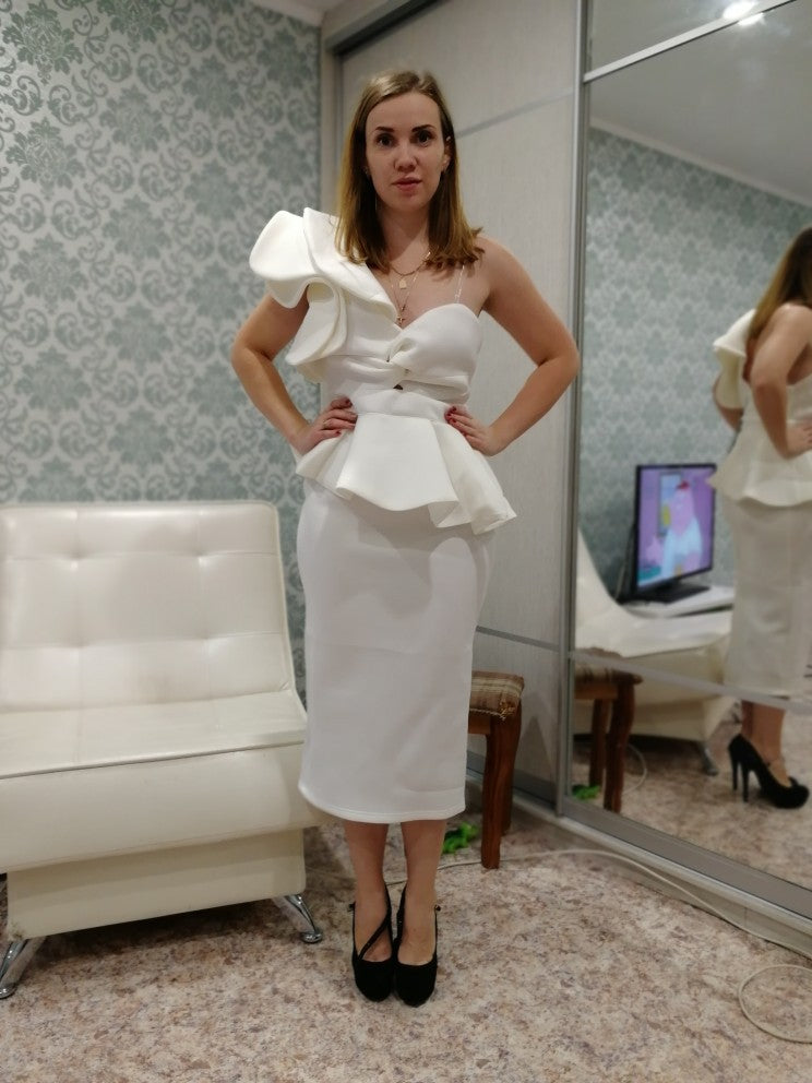 Designed with structure and softness, this off shoulder dress brings together ruffled detailing and an open back for a modern, refined shape.