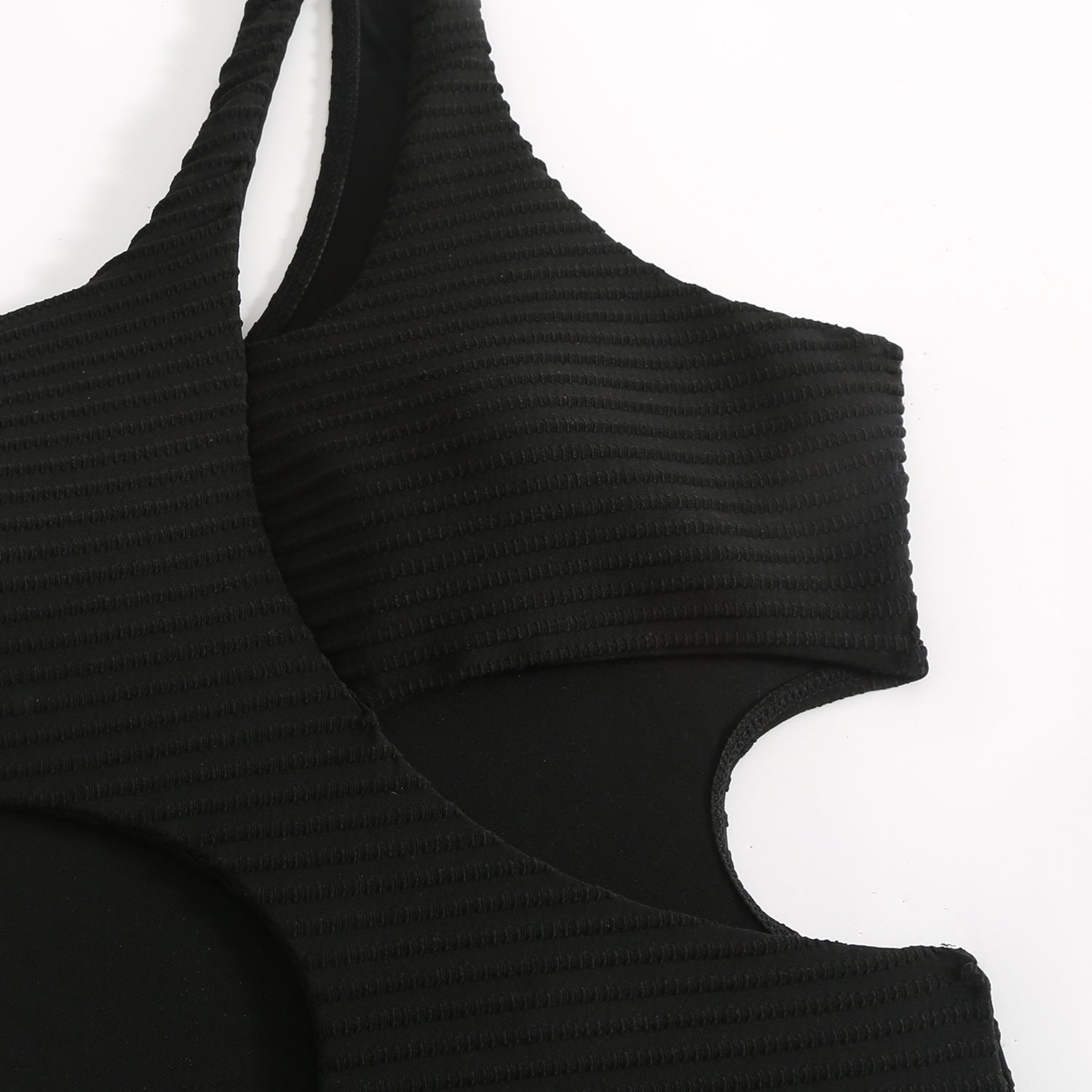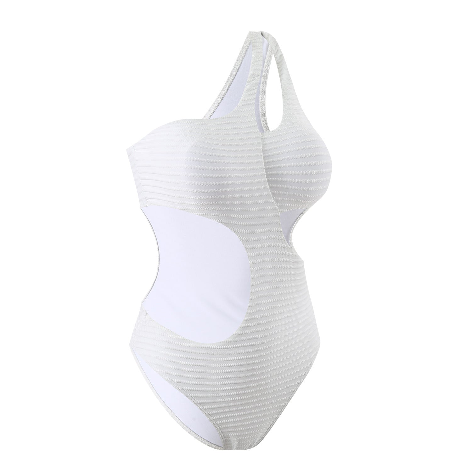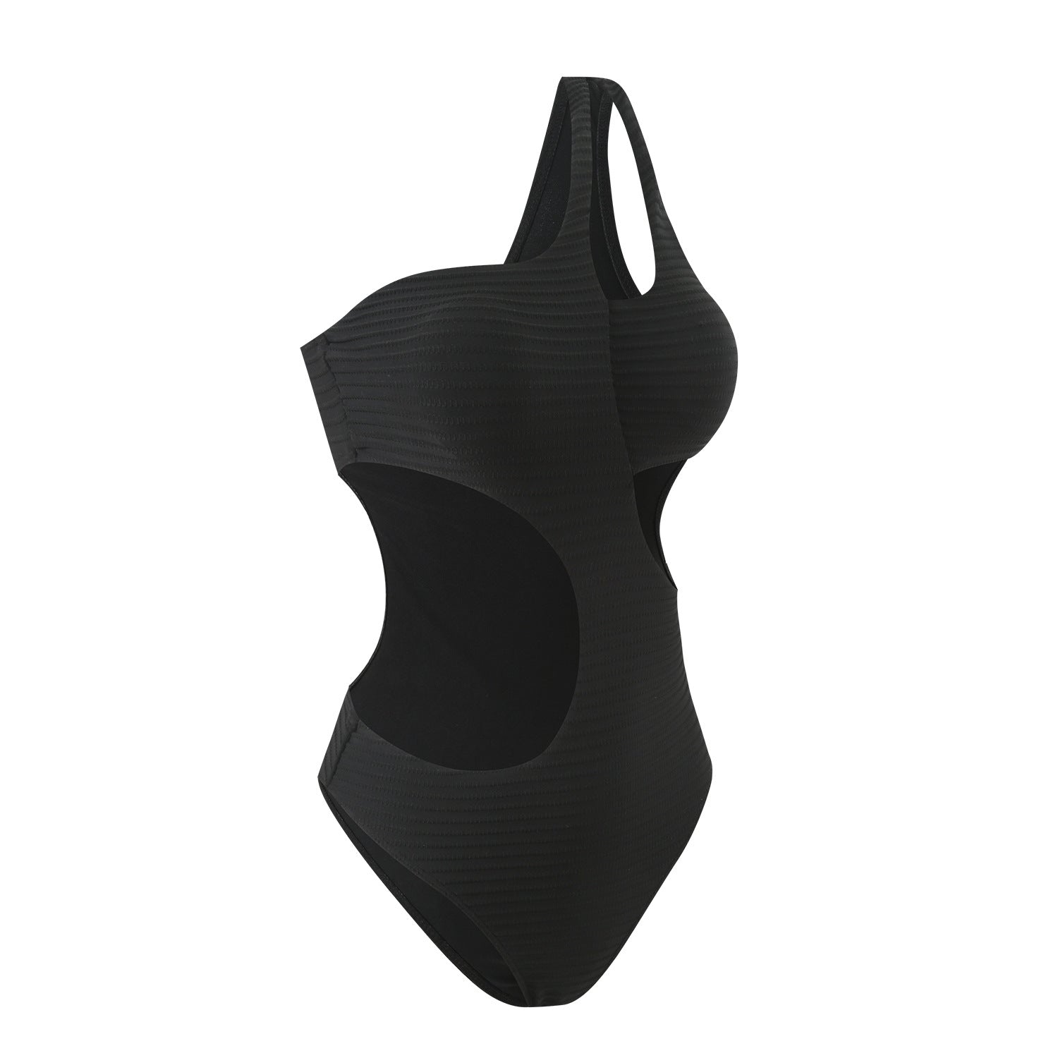 The subtle cutout adds a trendy touch, while the one-shoulder style offers flattering support and a chic silhouette.