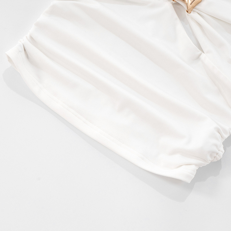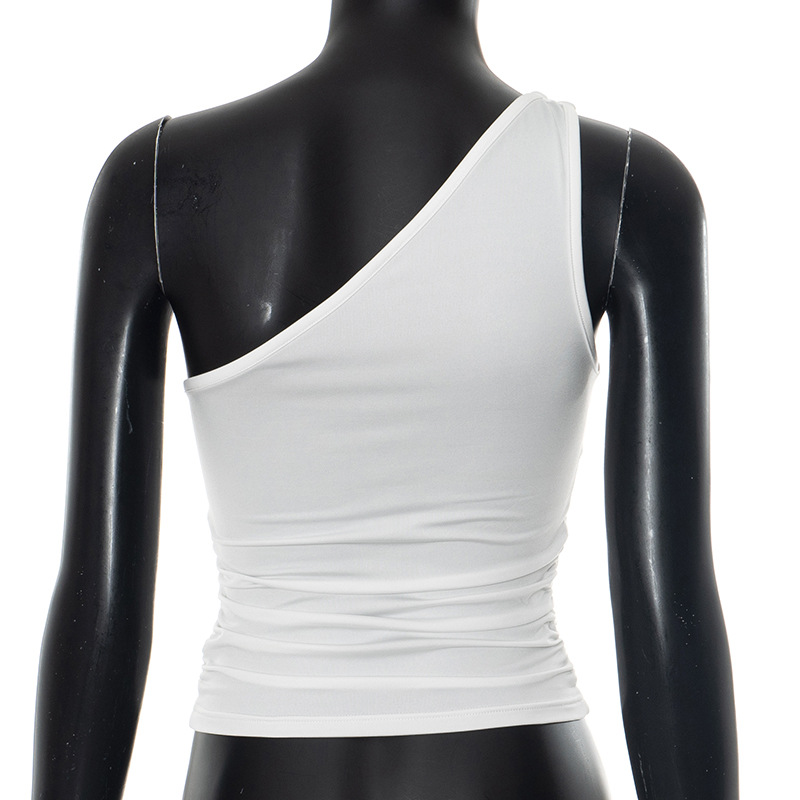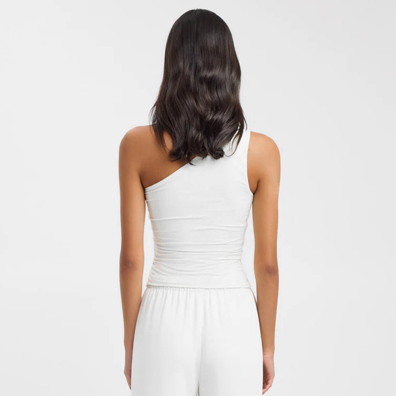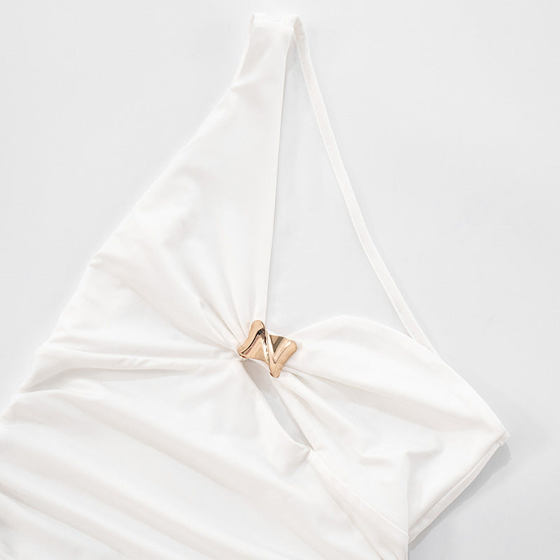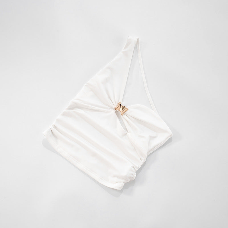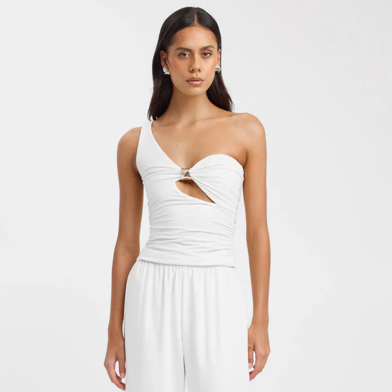 One Shoulder Cutout Top with Gold Ring | White Slim Fit Summer Tank | noémi