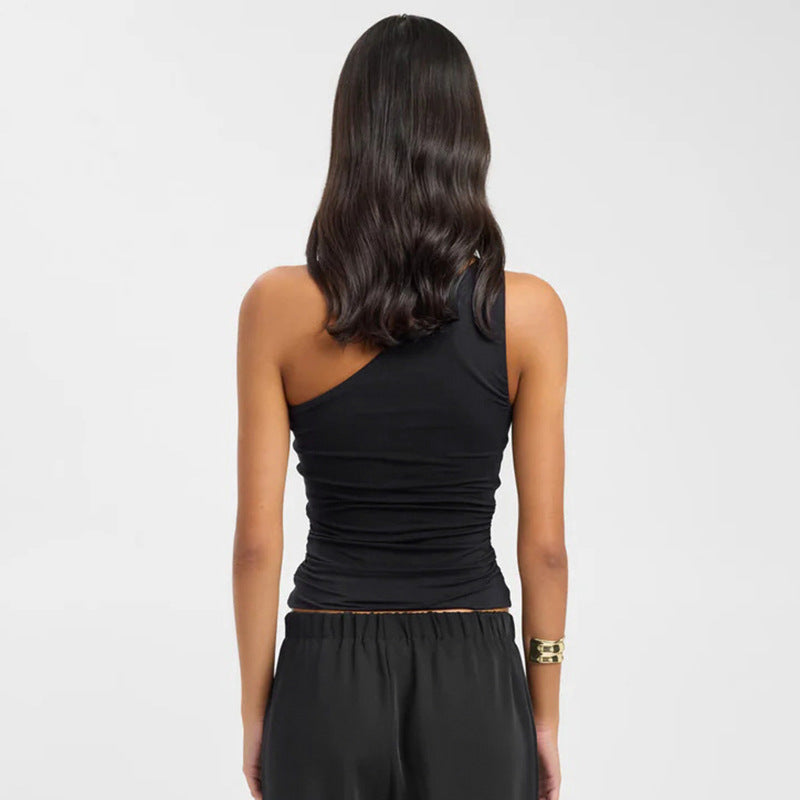 Step up your summer style with this stunning One Shoulder Cutout Top the ultimate mix of sexy and chic. Featuring a bold asymmetrical design and a trendy gold ring detail, this white slim fit tank hugs your curves while keeping things effortlessly cool. Whether you're hitting a rooftop party, brunch with your crew, or just vibing on a sunny day, this top is your go-to for those “wow” moments.