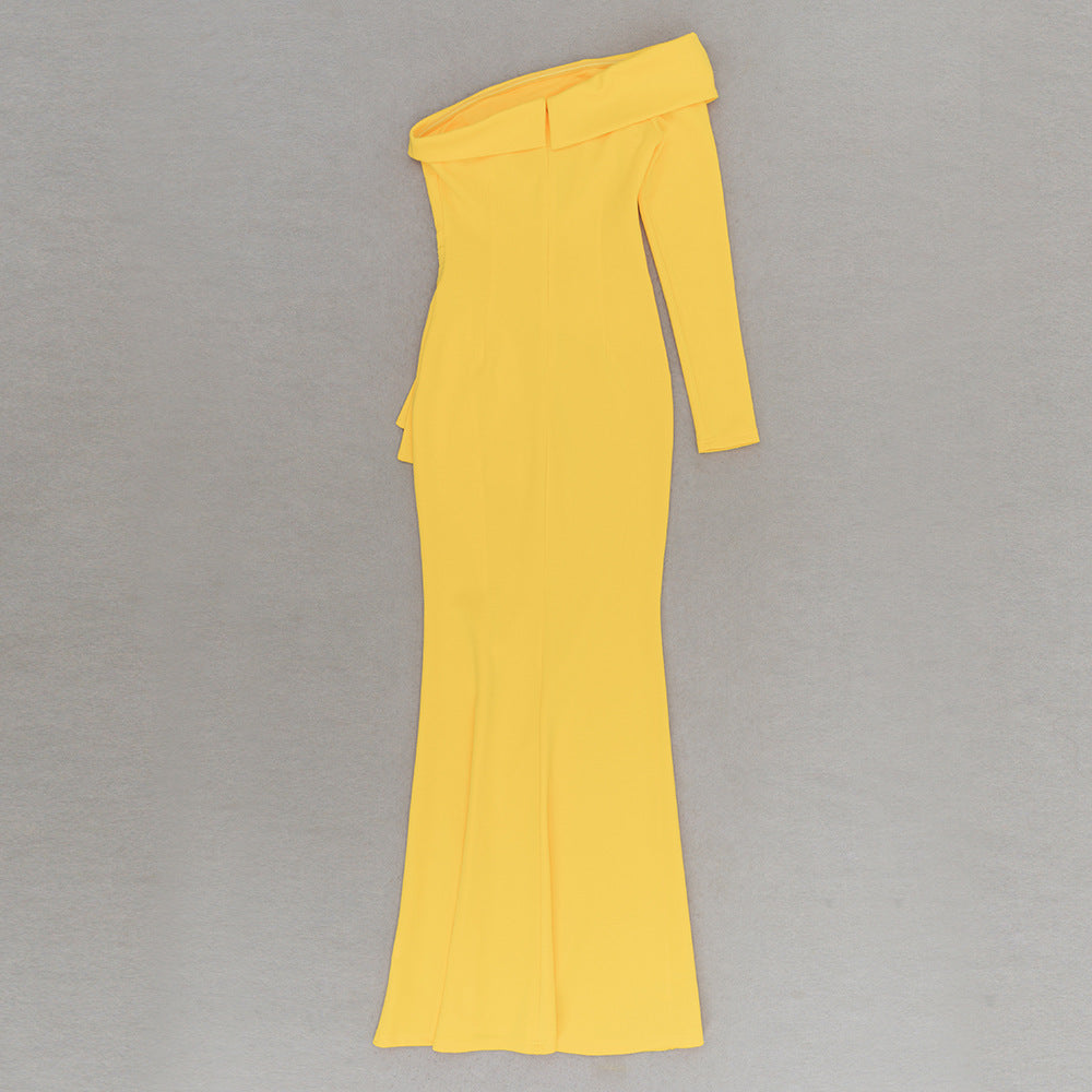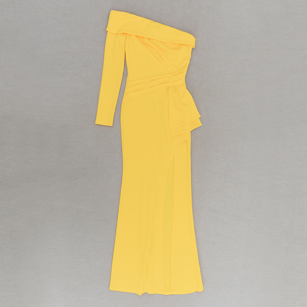 One Shoulder Diagonal Collar Split Hem Bodycon Dress | noémi