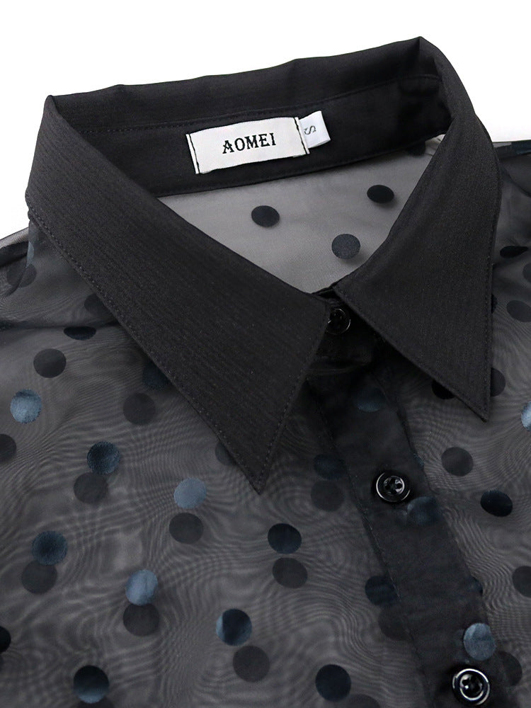 Polka Dot Puff Sleeve Top | See Through, Long Sleeve Womens Shirt | noémi