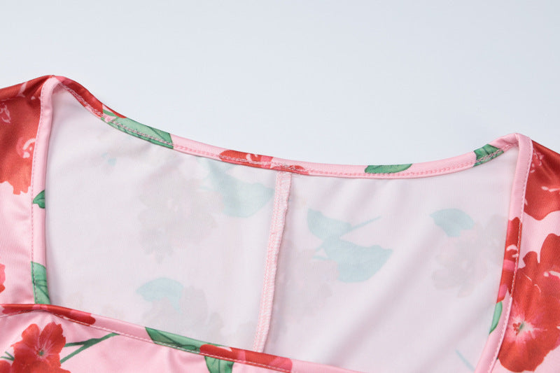 Printed Long Sleeve Ruffle Dress | Square Neck Fitted Waist | noémi