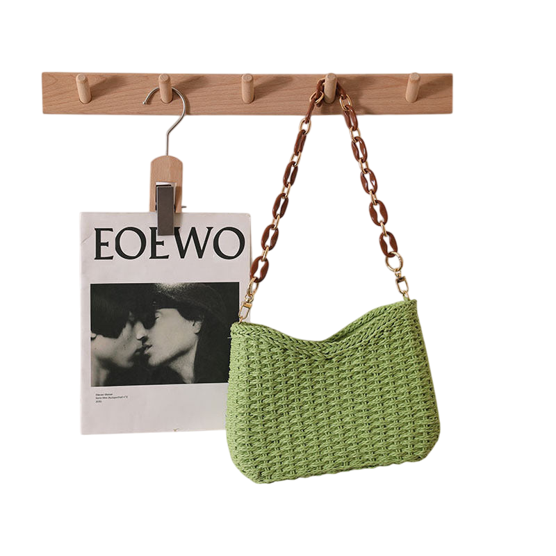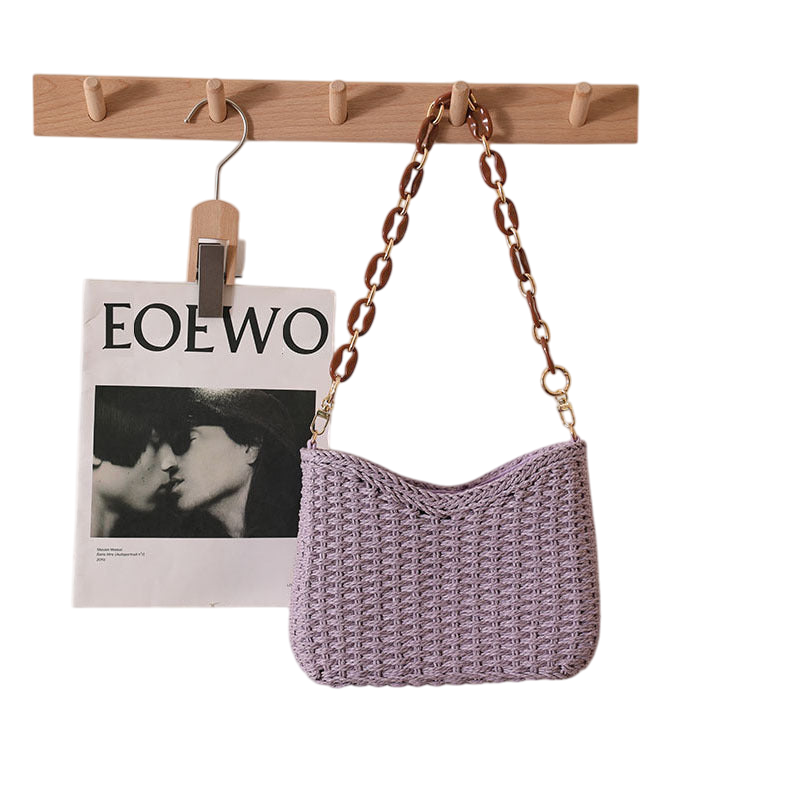 Purple Straw Shoulder Tote Bag – Woven Beach Carryall, Large Capacity | noémi