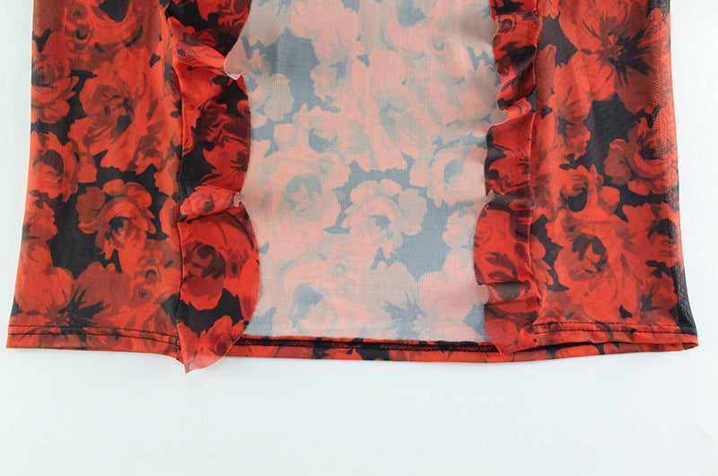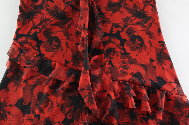 Red Hot Rose Mesh Dress | Irresistibly Elegant with a Daring Asymmetric Cut | noémi