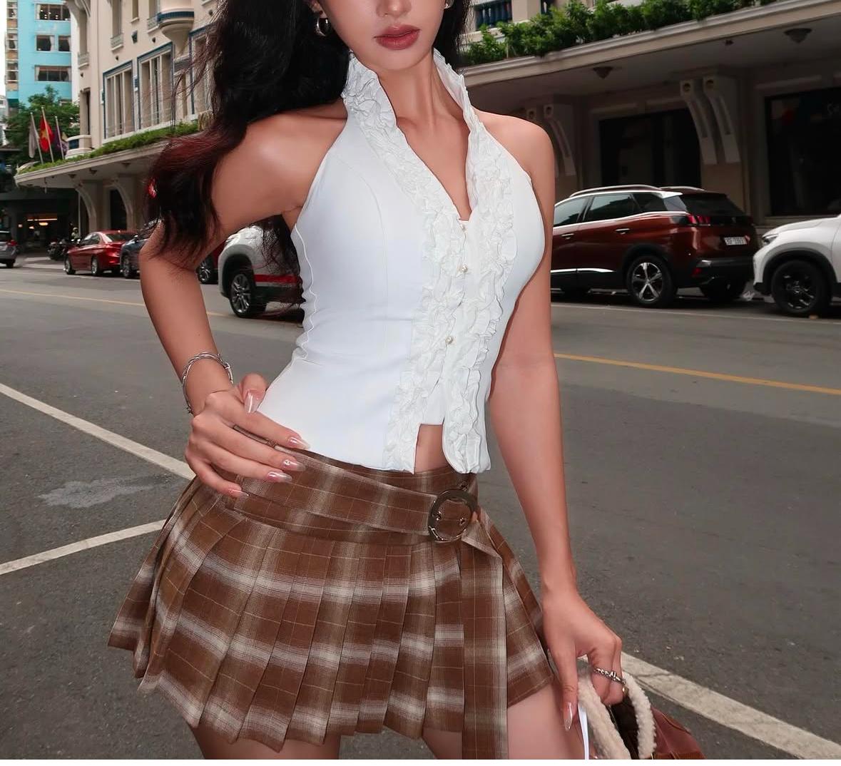 Wear it with a plaid skirt for that coquette vibe or dress it up with tailored pants for a sultry edge. Either way — this top owns the room.