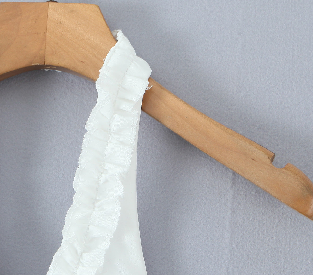 The deep V neckline and cascading ruffle trim create a dreamy Y2K-inspired silhouette that's equal parts sweet and sexy.