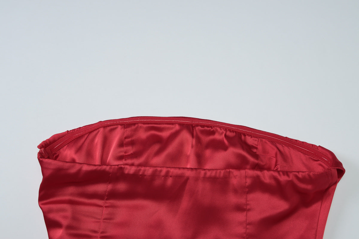 Satin Pleated Slim Tube Top Dress for Women | noémi