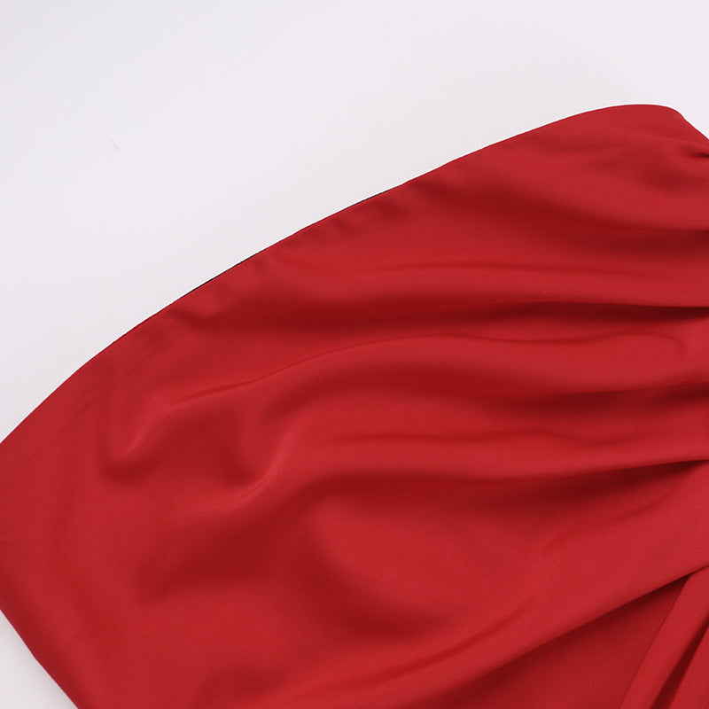 This ultra-sleek, strapless beauty hugs your curves in all the right places, with a luxe satin finish that glows under city lights. Whether you're stepping into a rooftop party or sipping cocktails downtown, this dress makes every entrance unforgettable.