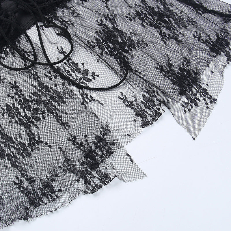 This romantic-meets-bold piece is crafted in delicate floral lace mesh, hugging your figure with a flirty strapless corset-style silhouette and an adjustable front tie that adds the perfect amount of drama.