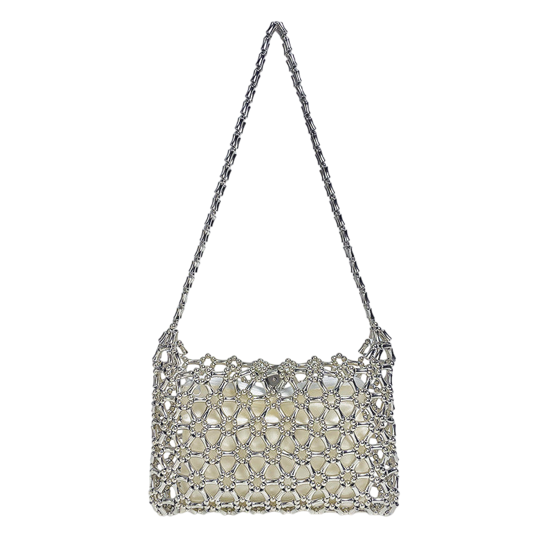 Silver Bamboo-Beaded Shoulder Bag – Hand-Woven Small Carryall | noémi