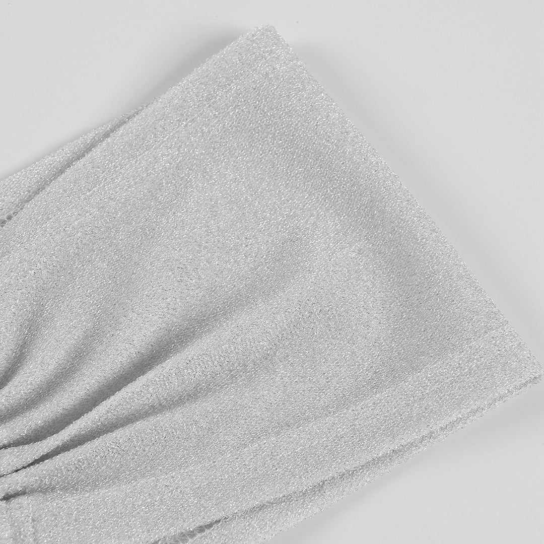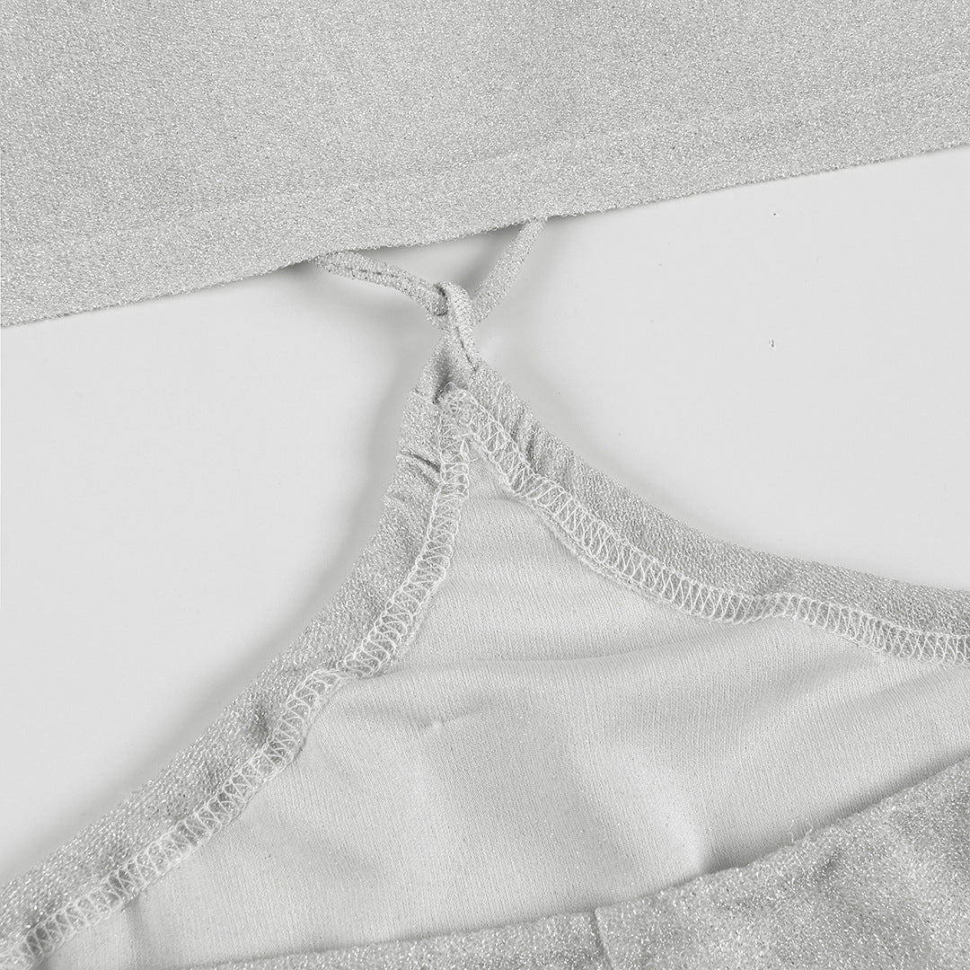 Silver Shimmer Cutout Gown | Backless Halter Maxi Dress with Metallic Glow | noémi