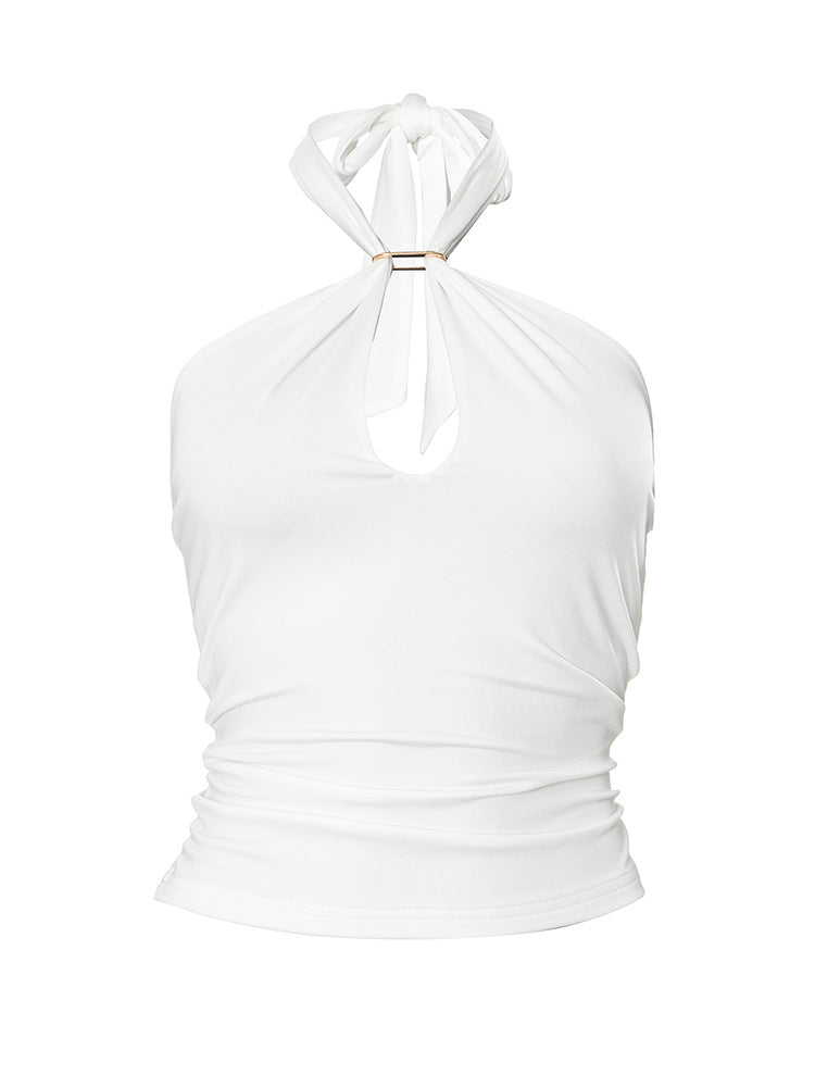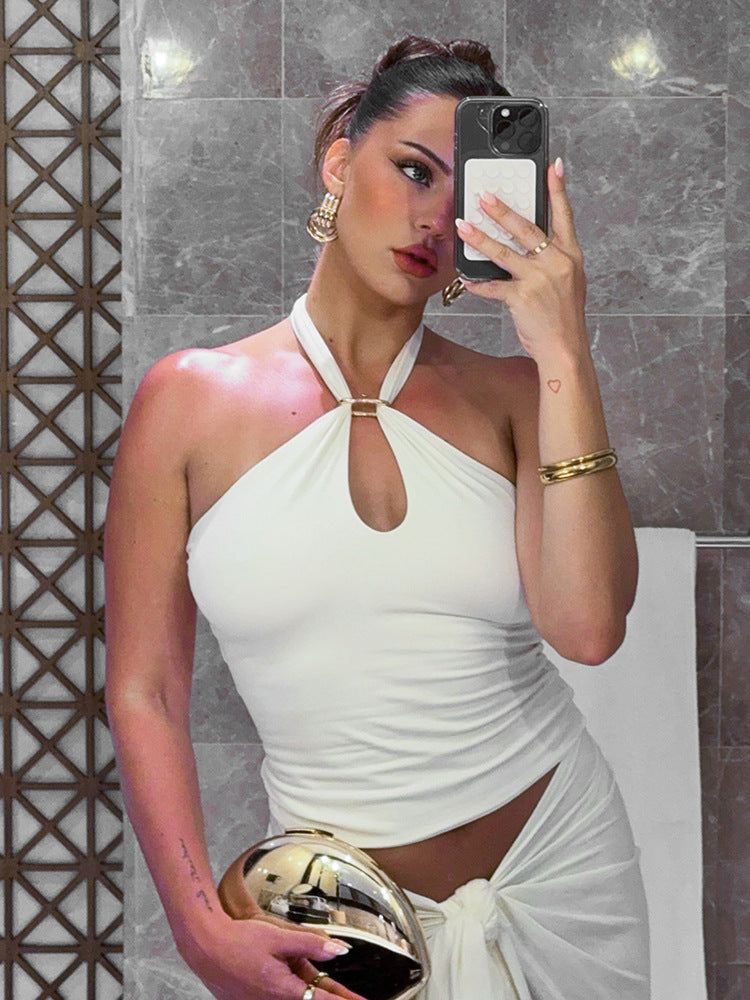 Dare to show some skin in the ultimate going out top. The noémi Sleeveless Backless Cutout Halter Top is bold, sexy, and made to turn heads from rooftop parties to midnight dance floors.