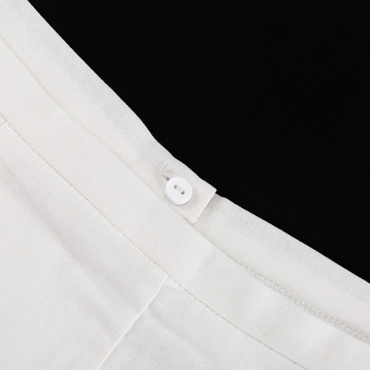 This daring two-piece set features a sleeveless waistcoat perfectly paired with a sexy, crisscross lacing top and a sleek pantskirt — the ultimate blend of bold and sophisticated.