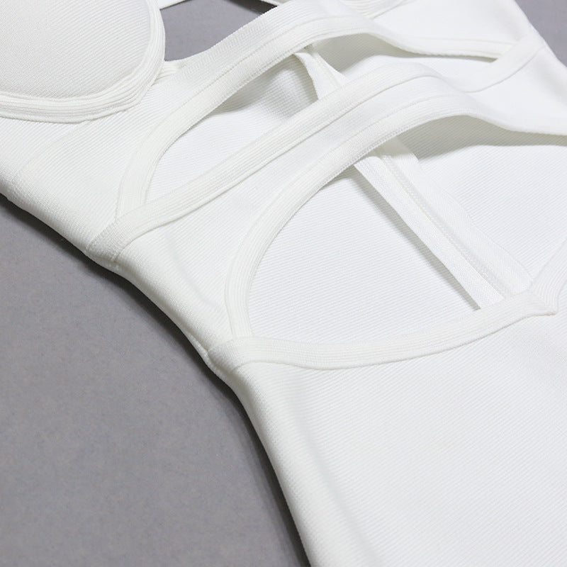 Designed for a confident silhouette, this structured one step bandage dress brings together sharp lines and a flattering slim fit.