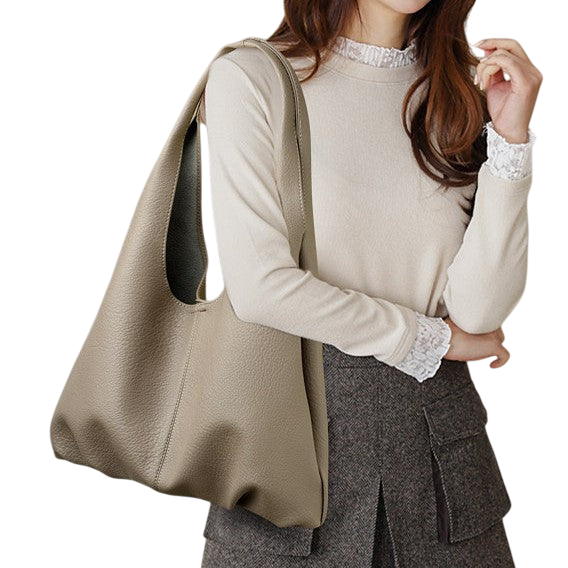 Soft Faux-Leather Shoulder Tote Bag – Large-Capacity Office Carryall, Brown | noémi