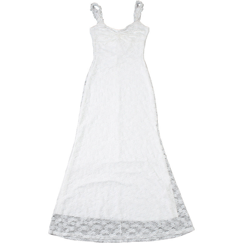 Solid Color High Waist Maxi Dress with Suspenders and Slim Fit | noémi