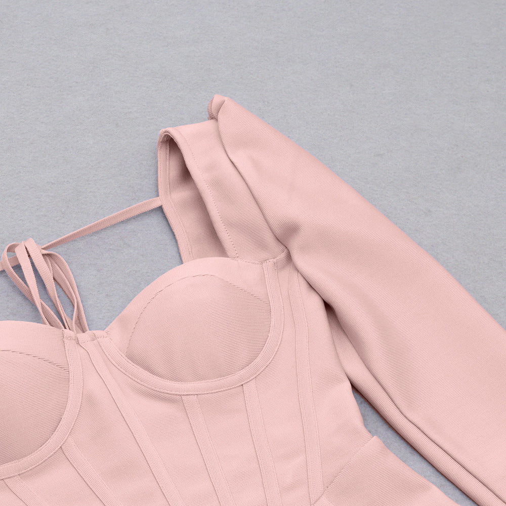 Square Neck Long Sleeve Bandage Dress | Slim Fit One Piece with Hip Length Hem | noémi