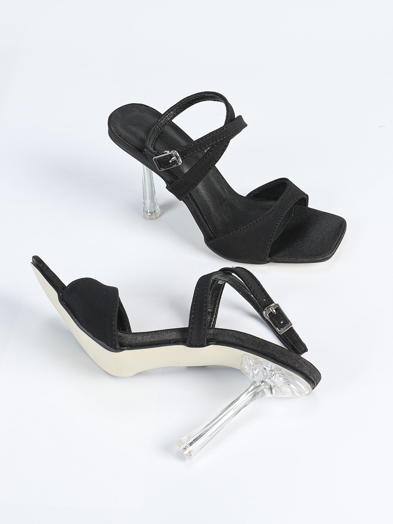 Step into sheer confidence with the noémi Square Toe Transparent Stiletto Sandals designed for women who don't just enter a room... they own it. Featuring a sleek transparent Lycra upper, these heels give a barely there look with bold attitude. The 9cm crystal stiletto heel catches the light (and everyone's attention), while the square toe adds a fashion forward edge.