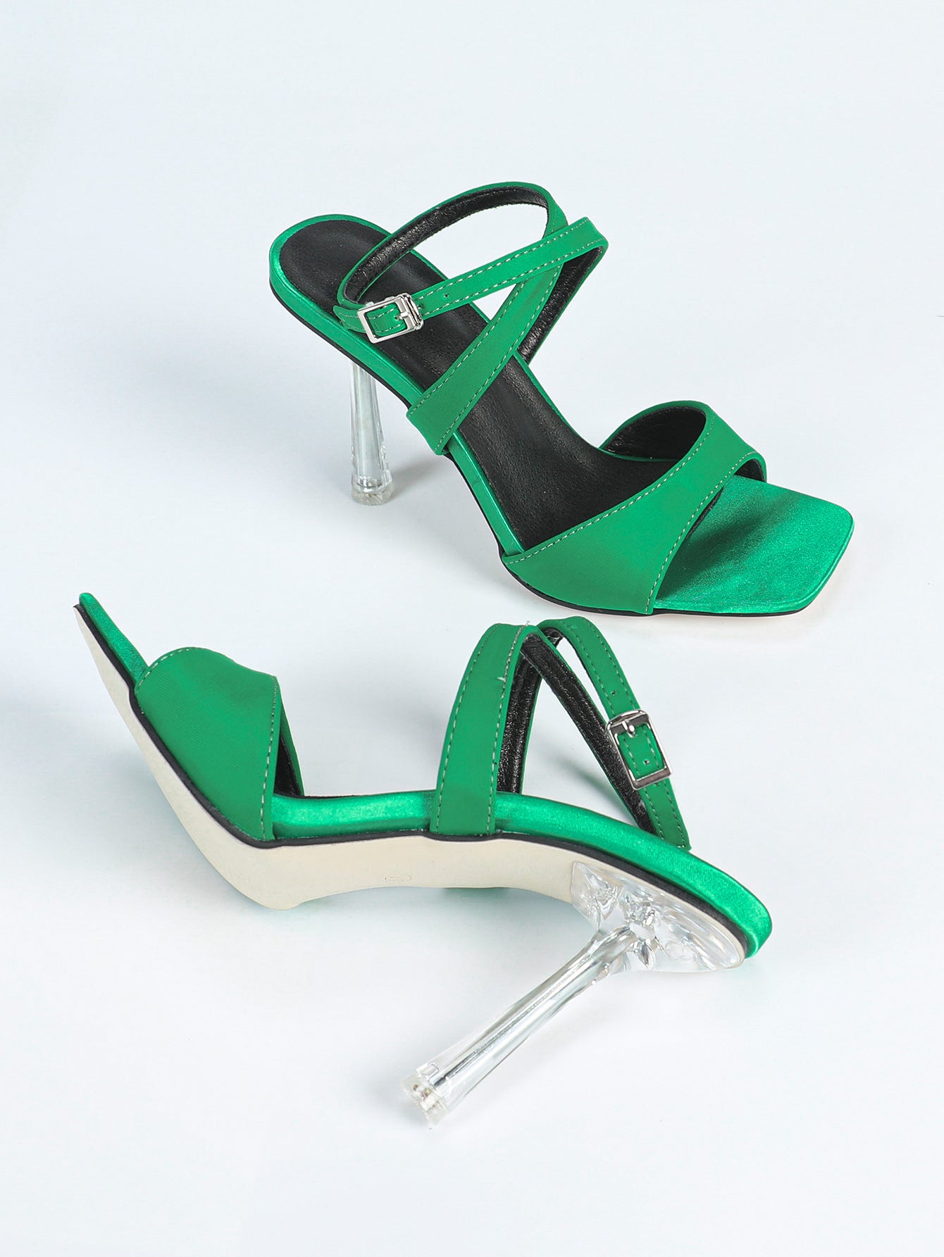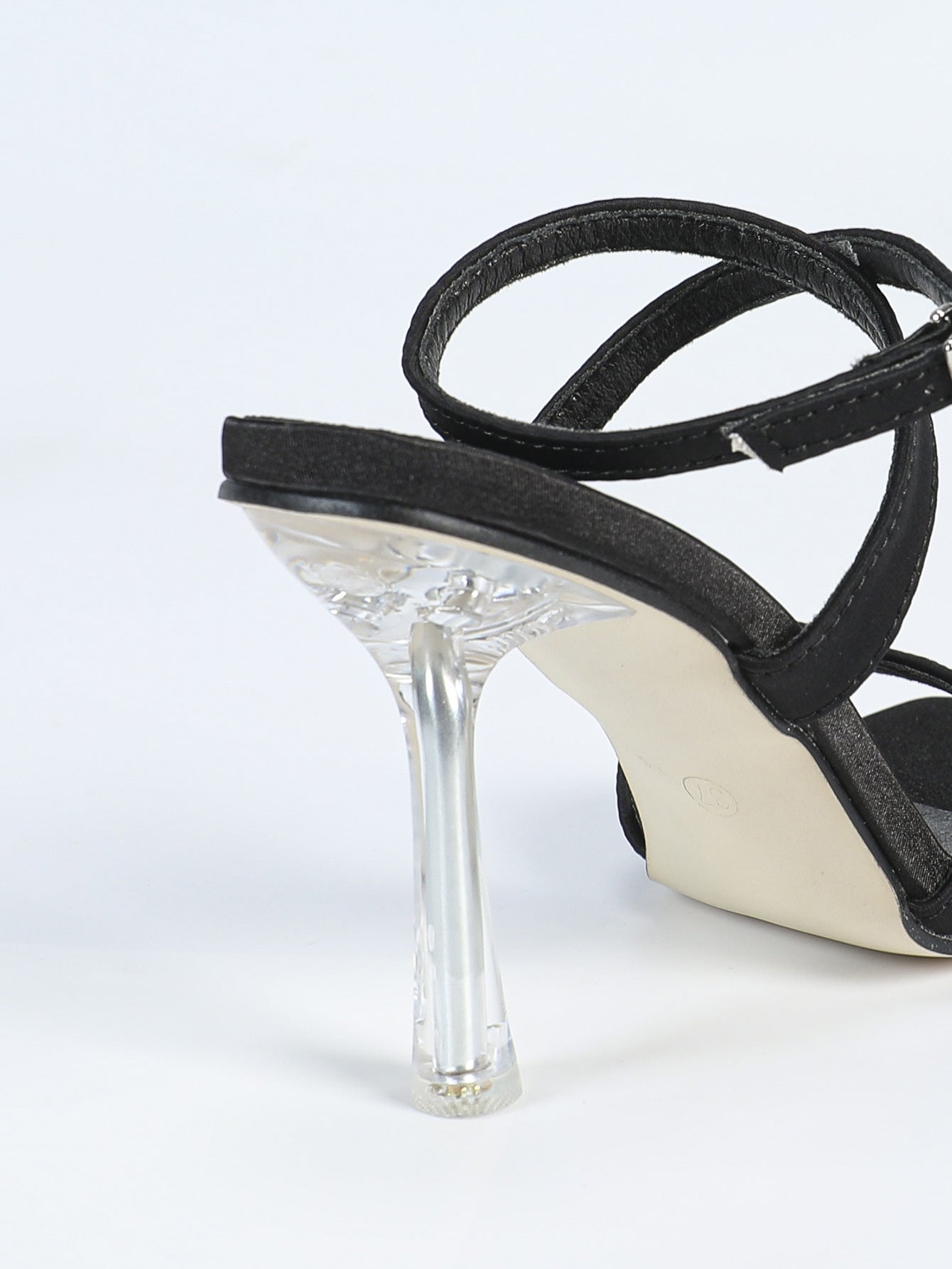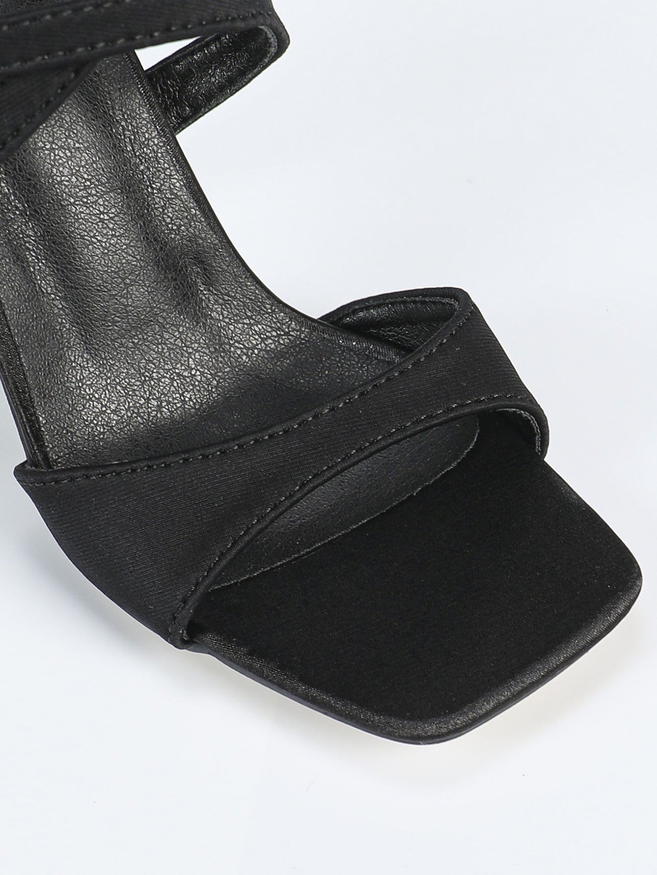 Stiletto Sandals | Square Toe, Lycra, 9cm Crystal Heel, Back Strap | noémi