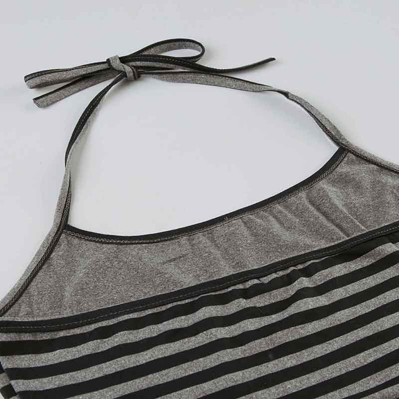 Striped Halter Two Piece Lounge Set | Slim Fit Strap Crop Top Drawstring Shorts | noémi