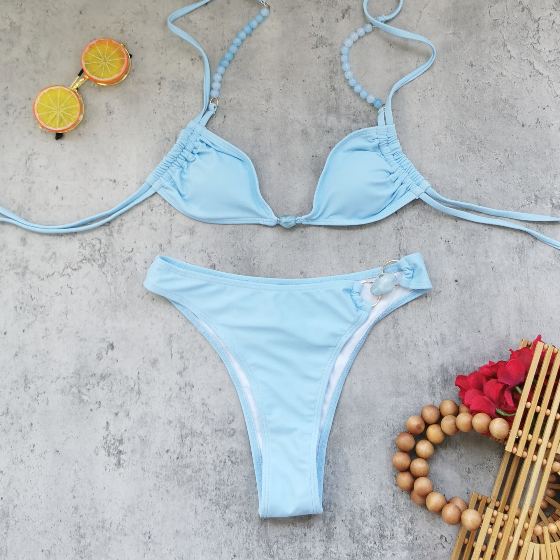 Three Strap Low Waist Backless Split Bikini in Solid Color for Women | noémi