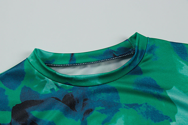 This slim-fit stunner hugs in all the right places, while soft pleats and a dreamy, sunset-inspired tie-dye pattern add graceful movement.