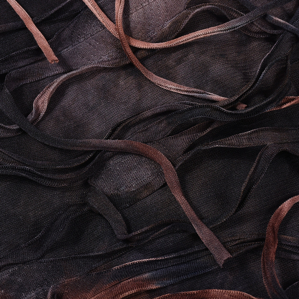 With a free-flowing structure and tactile finishes, this tie dye tassel dress brings motion and color together in a striking silhouette.