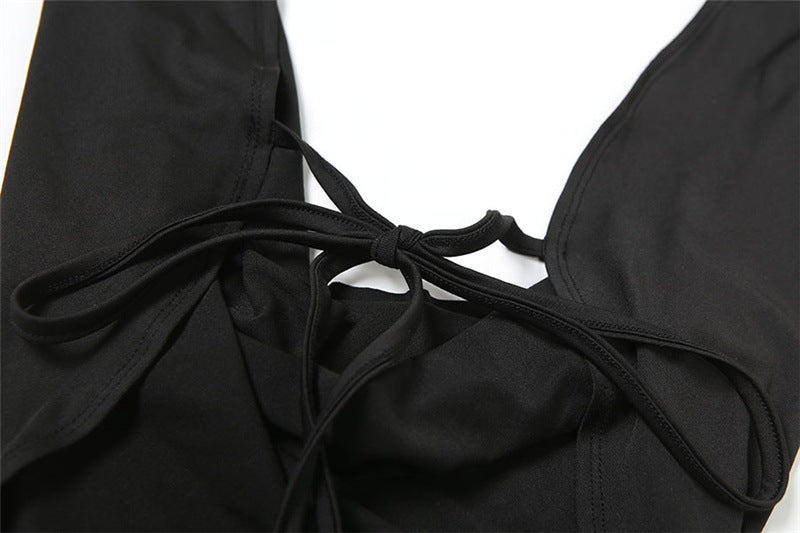 Tube Top & Halter Deep VNeck Backless Lace Up Jumpsuit Set | noémi