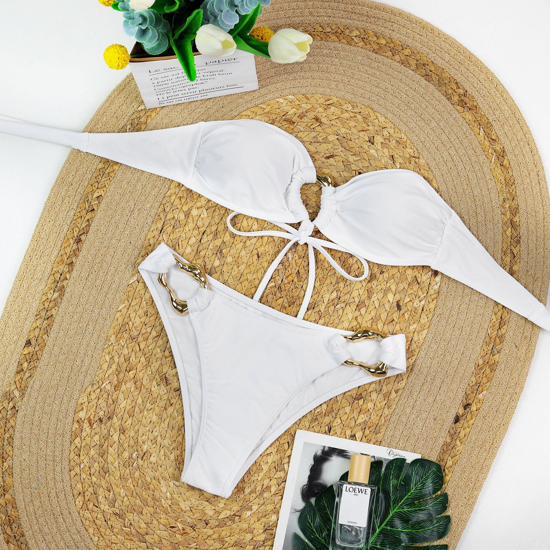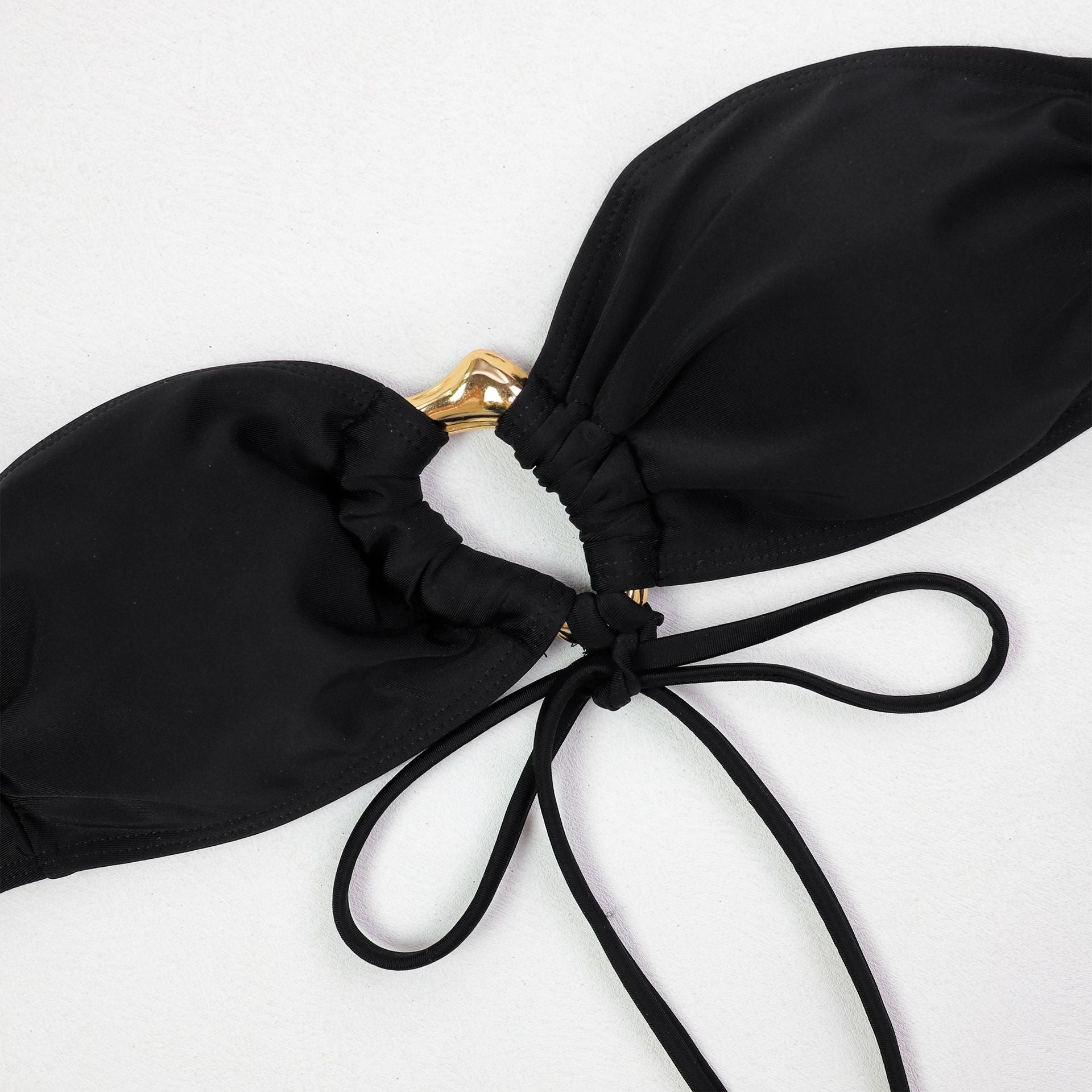- Tube top bikini featuring a metal buckle for added detail and secure fit