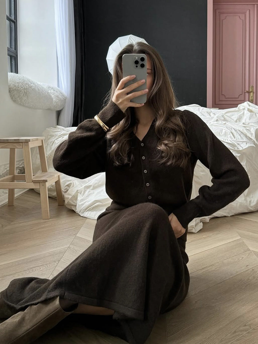 Two Piece Knit Skirt Set | Cozy Button Cardigan & Straight Skirt | noémi