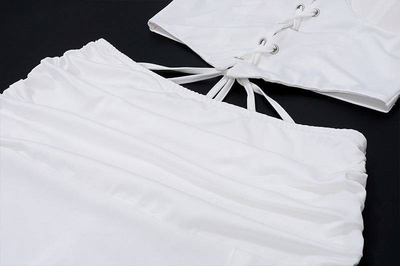 Unleash your inner goddess with our Summer Sexy 2-Piece Set—a must-have for every bold and stylish woman. Featuring a lace-up bustier crop top that hugs your curves perfectly, paired with a flowy pleated skirt boasting a daring thigh-high slit, this outfit is made to turn heads wherever you go.