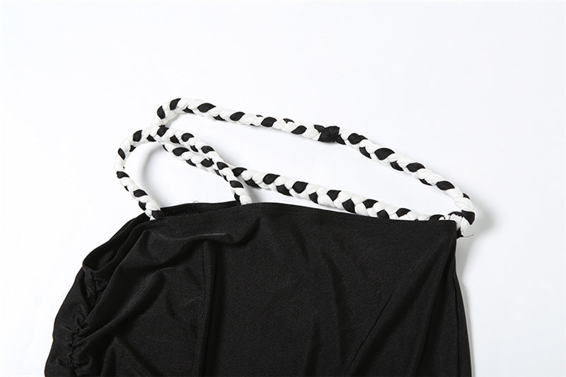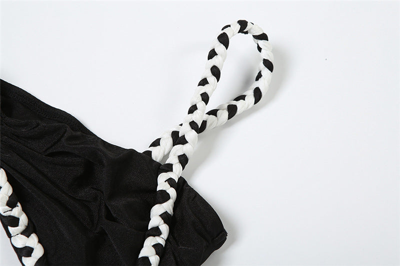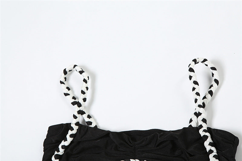 This sizzling two-piece set from noémi is your ultimate summer power move. Designed to turn heads and break hearts, this contrast-trim co-ord features a flirty ruffled camisole and a curve-hugging maxi skirt with a high thigh slit that screams confidence.