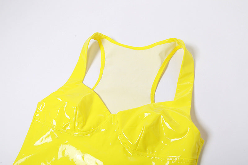 Crafted to sculpt your curves with its slimming glossy finish and daring V-neckline, this dress is pure summer seduction.