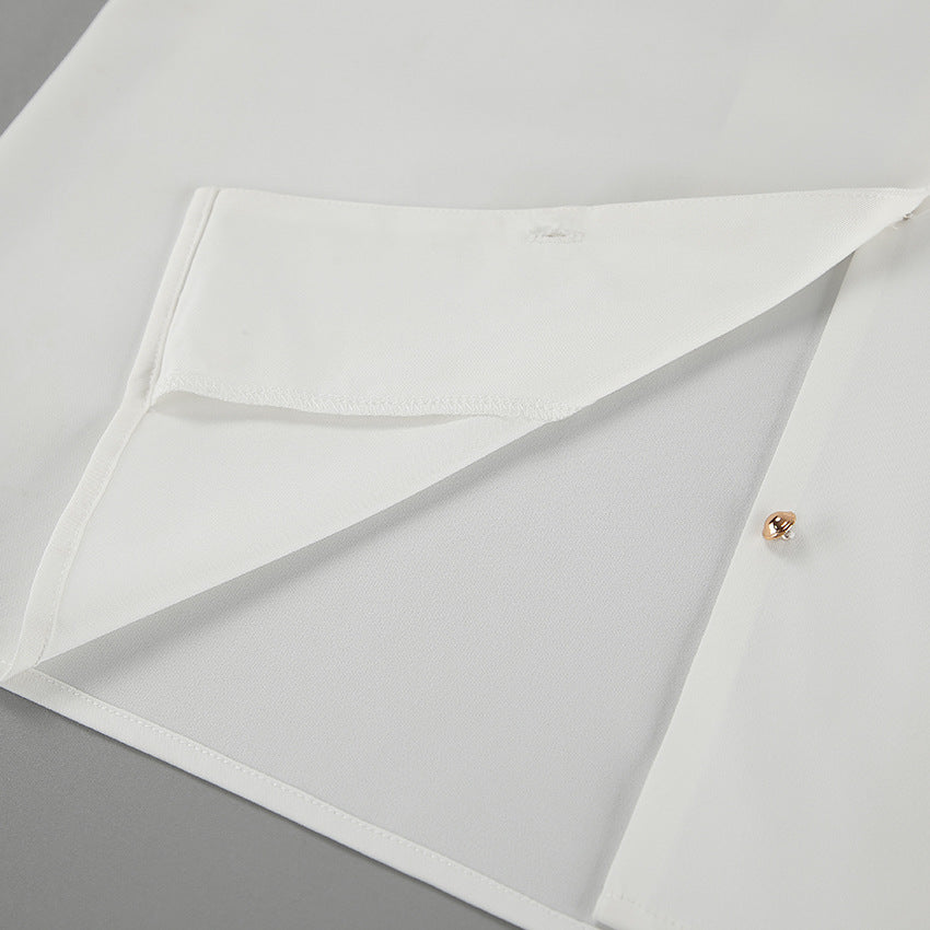 Unveil the perfect fusion of elegance and edgy style with our Fall White Sexy Collared Slim Fit Long Sleeve Shirt.