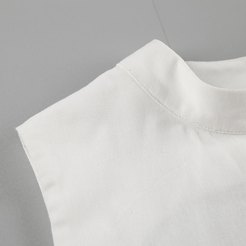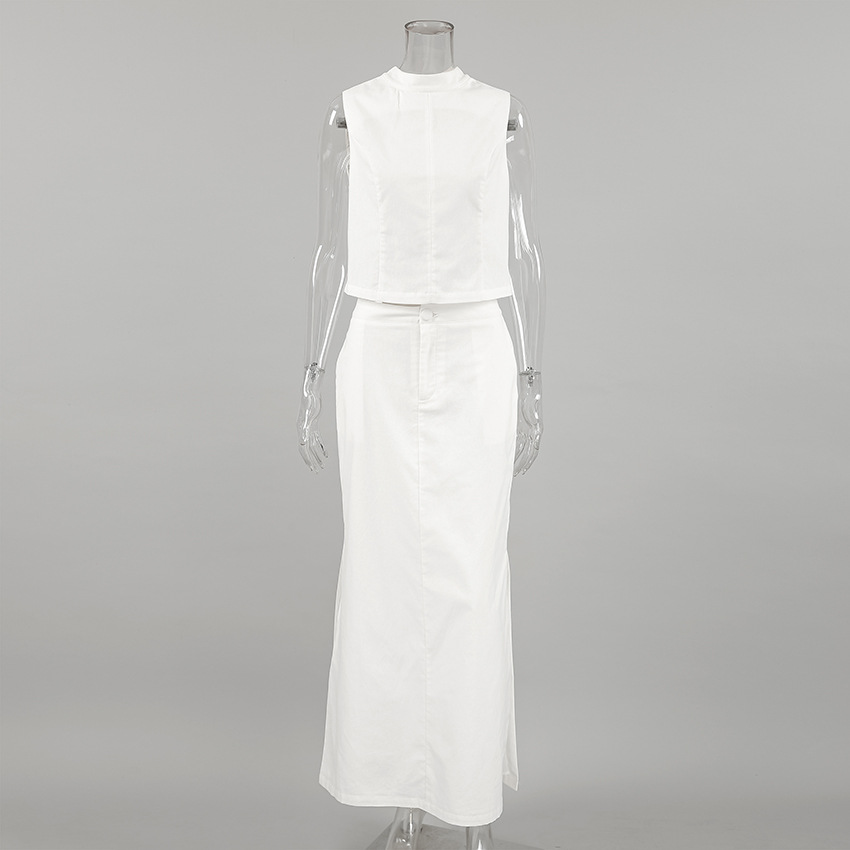 White Cotton Linen TwoPiece Set | Sleeveless Stand Collar Top & Long Slit Skirt | noémi