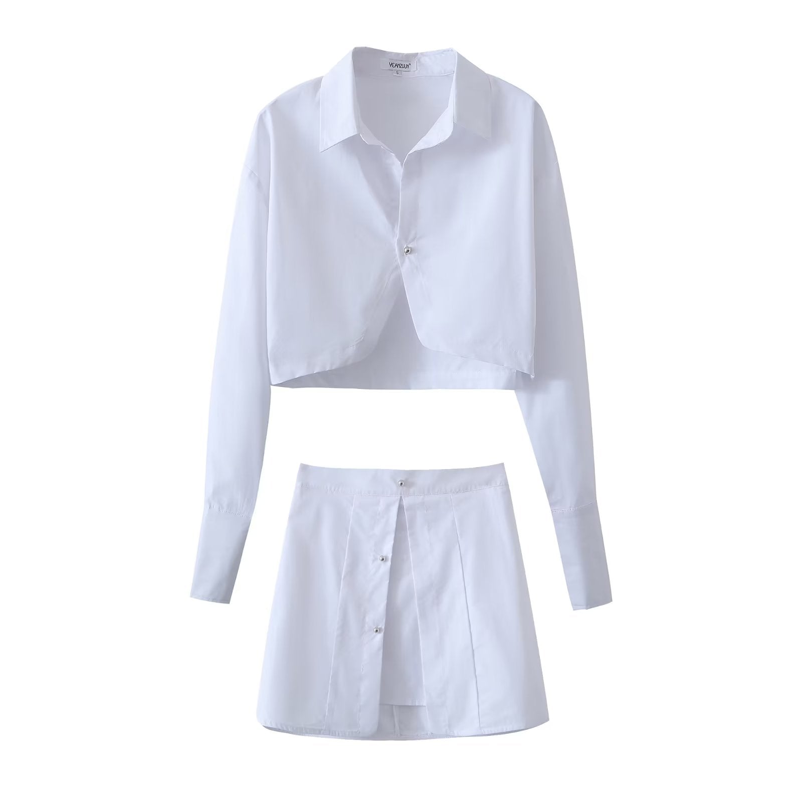 White Shirt & Mini Skirt Co ord | Button Up Crop Top & High Waist Skirt Set | noémi