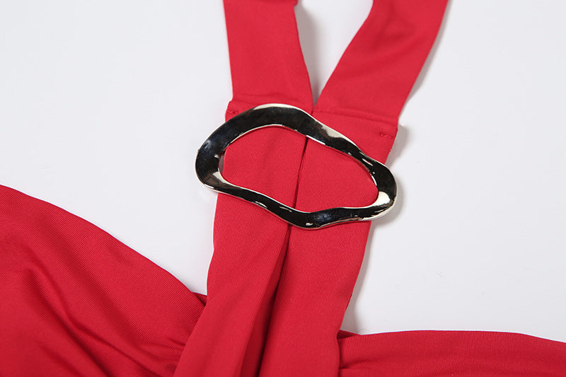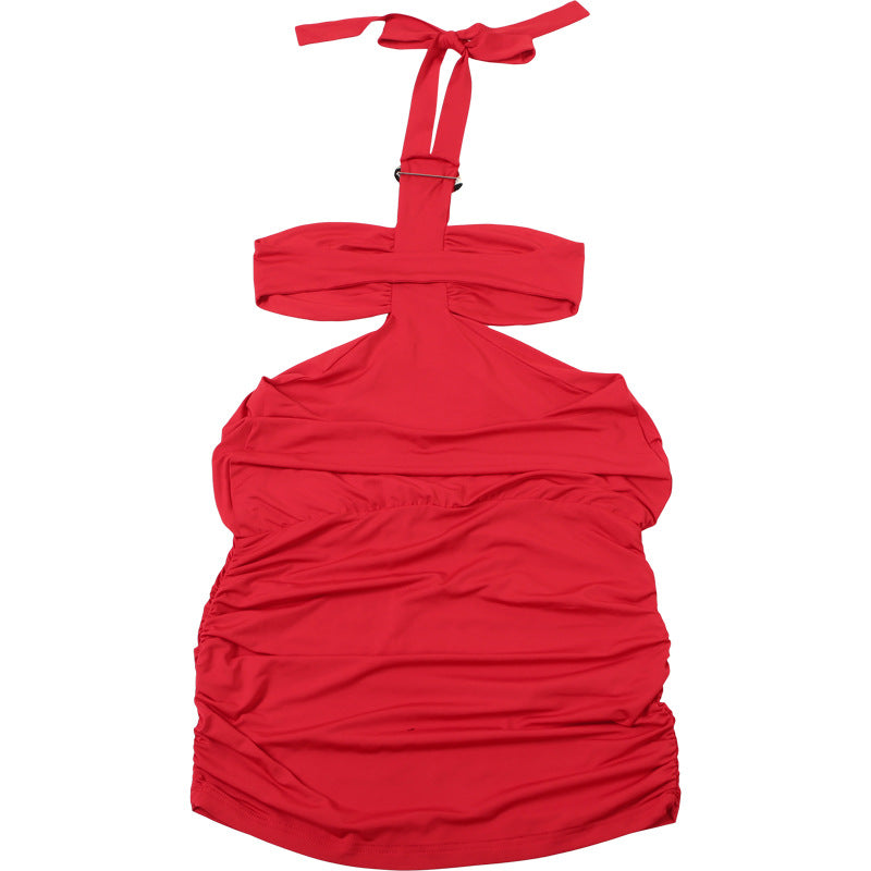 The halter neckline adds a touch of elegance, while the delicate pleats bring movement and grace to every step.