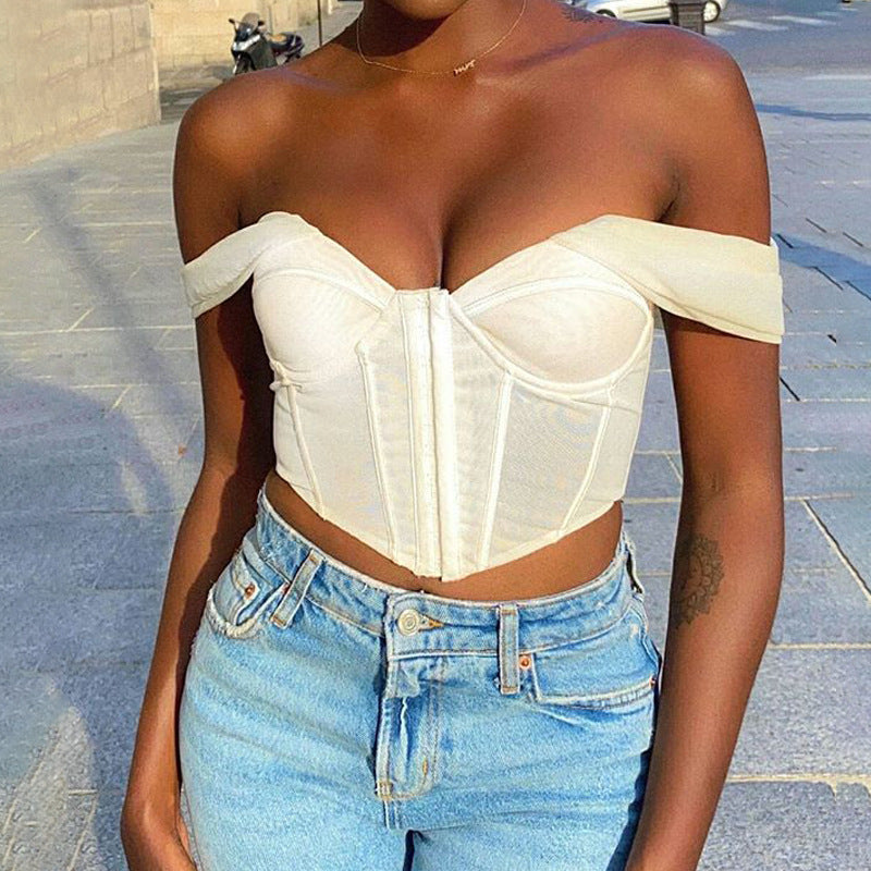 Steal the spotlight in the ultimate showstopper – Off-Shoulder Mesh Corset Top.