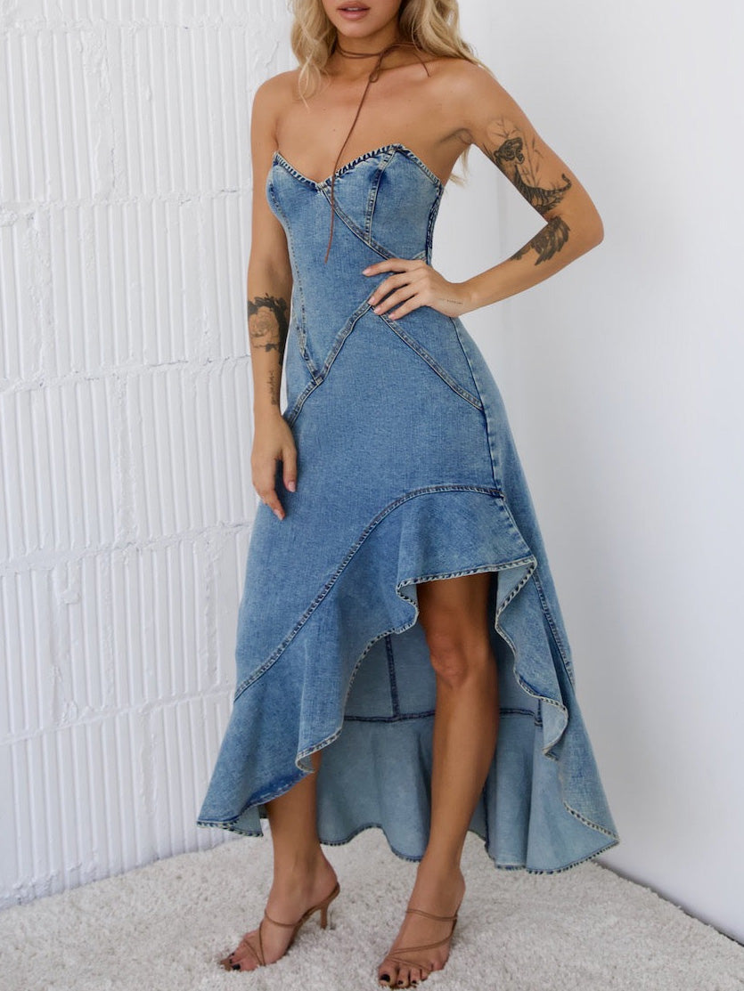 Women’s Strapless Denim Corset Fishtail Dress | Slim Fit, Asymmetrical Hem | noémi