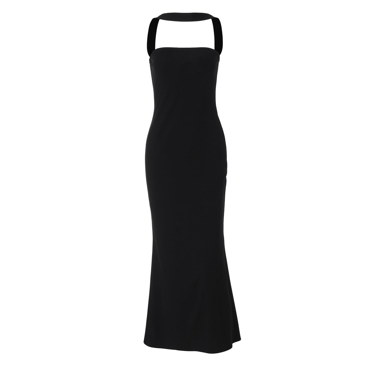 This show-stopping dress features a flattering off-the-shoulder collar and a delicate French halter neck that beautifully frames your neckline. The backless design adds a touch of irresistible allure, while the slim-fit silhouette hugs every curve, making you feel confident and radiant. The daring hip split adds just the right amount of flirtiness, perfect for turning heads at any evening event or special occasion.