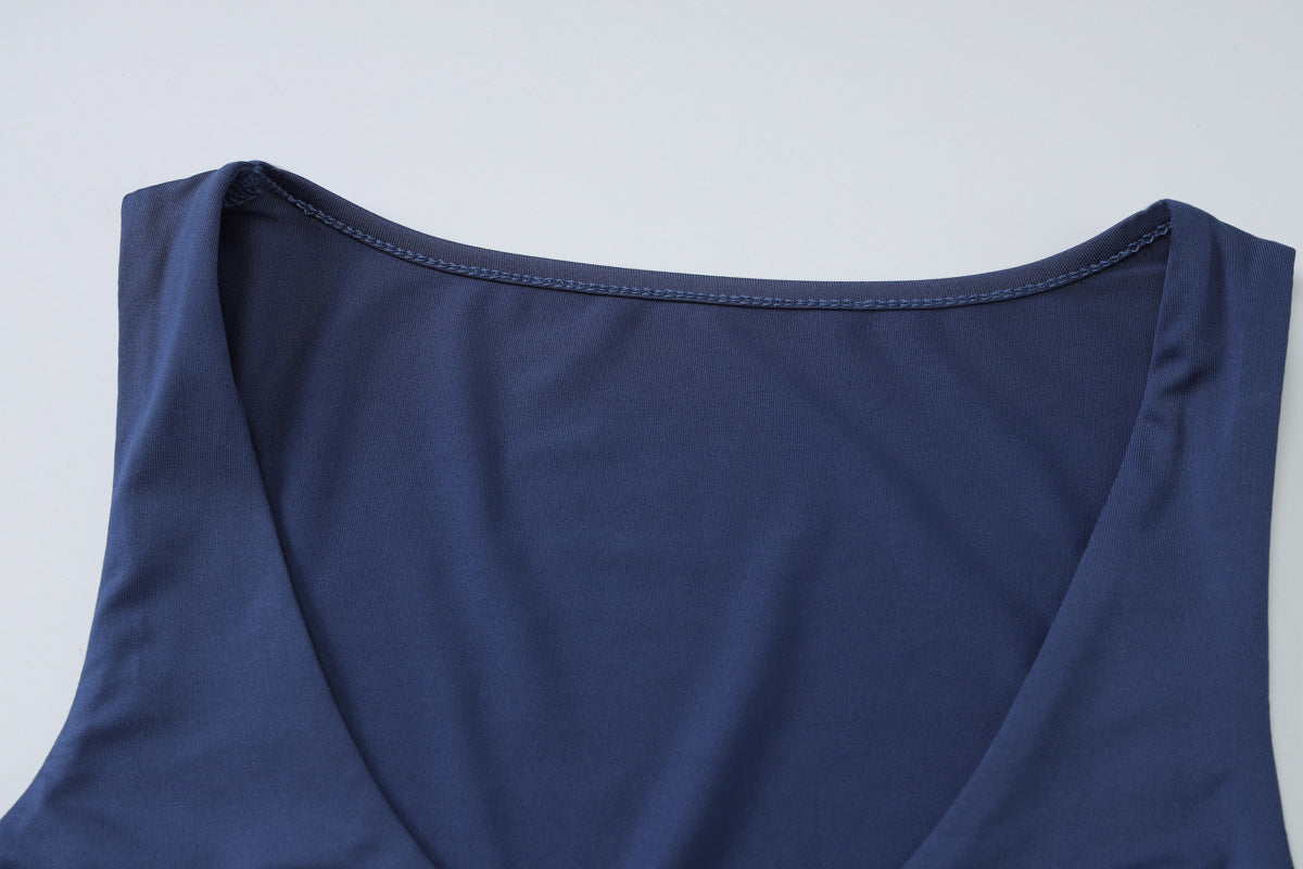 Women U Neck Sleeveless Pleated Slim Fit Sheath Dress Solid Color | noémi