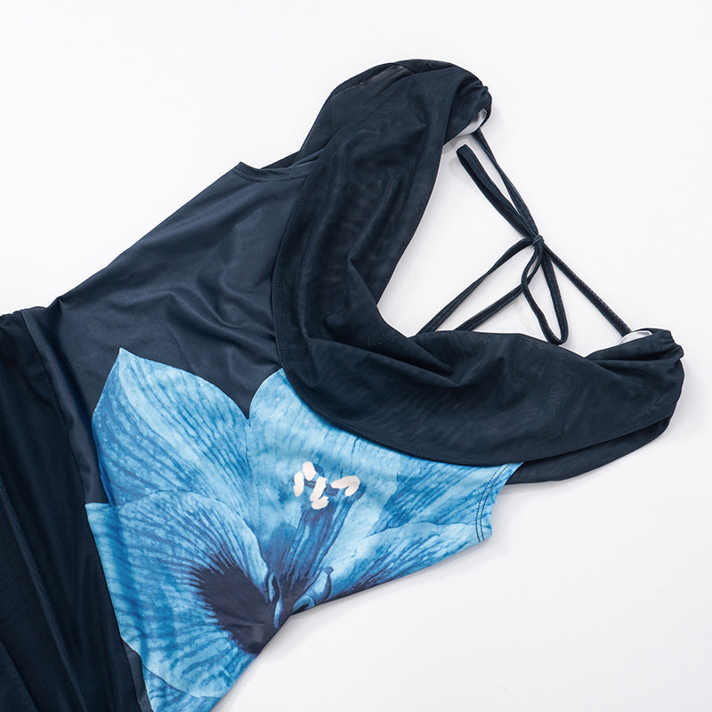 Featuring a chic swing collar, flirty side streamers, and a daring backless design, this dress perfectly blends comfort with sultry sophistication.