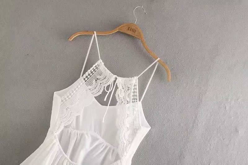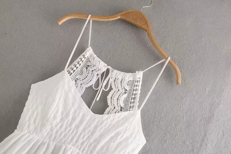 This flirty, backless beauty features delicate lace-up details and a playful plaid pattern, perfect for those warm days and cool nights.