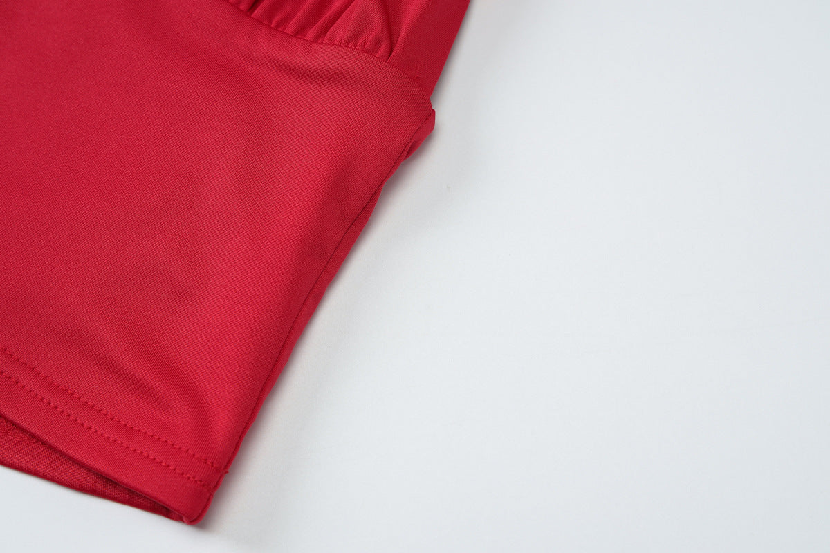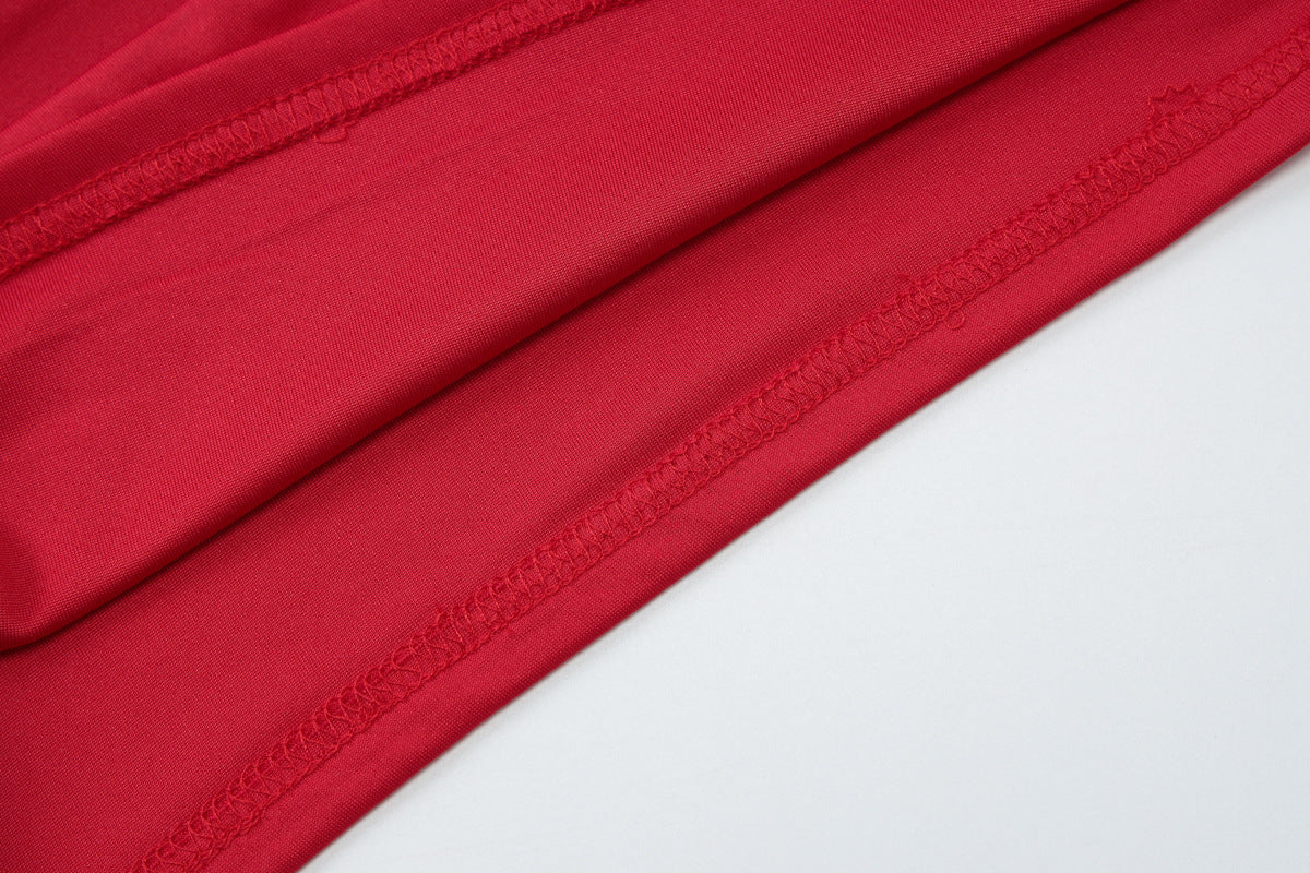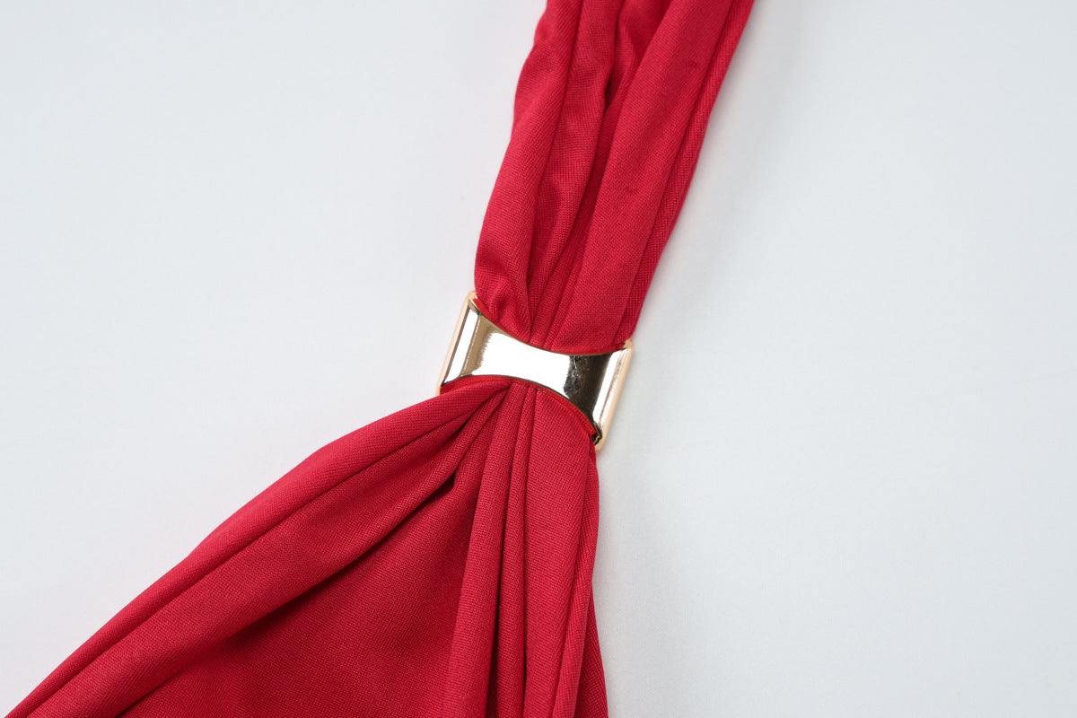 This sizzling red beauty is made to turn heads — featuring a daring deep V neckline, sleek metal accents, and a backless, slim-fit design that hugs your curves perfectly.