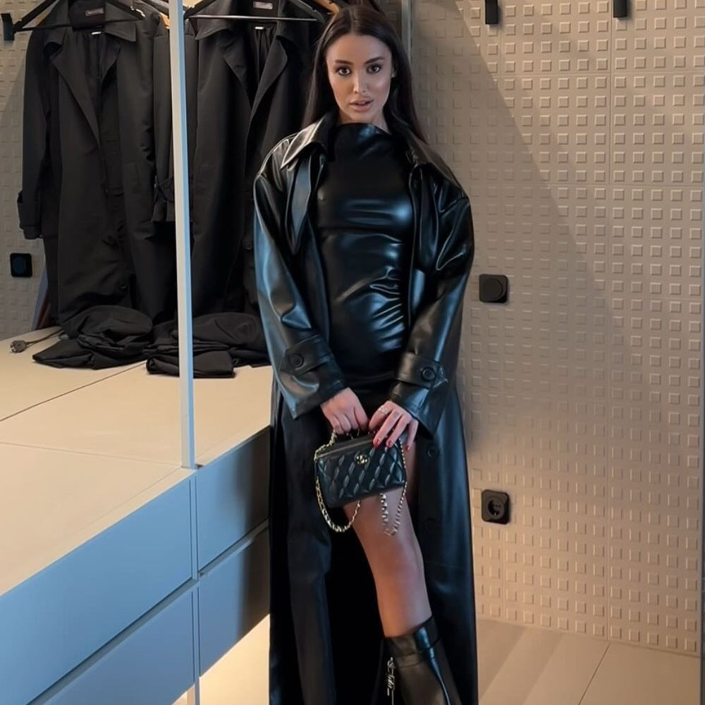Make a statement with the Faux Leather Sleeveless Sheath Dress designed to accentuate your silhouette with a slimming waist and sleek fit.