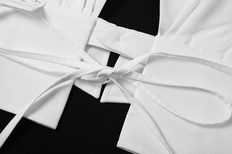 - Halter neckline with strong collar detail