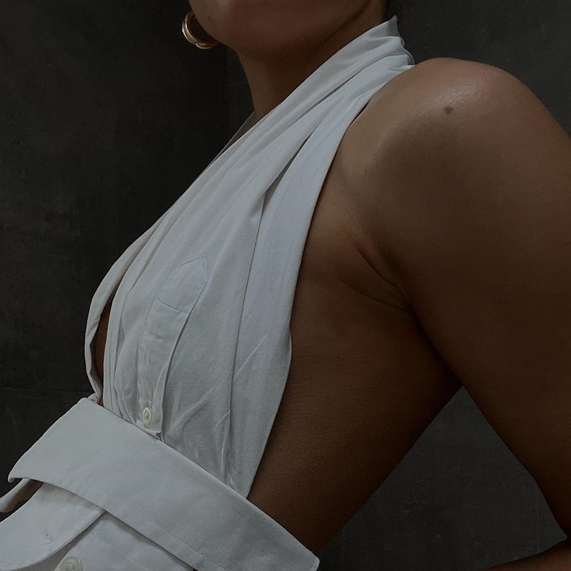 Womens Halter Neck Backless Cutout Slim Fit Crop Top Vest | noémi